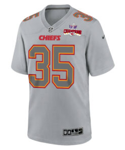 Jaylen Watson 35 Kansas City Chiefs Super Bowl LVIII Champions 4 Stars Patch Atmosphere Fashion Game Men Jersey – Gray JS7659 nicesnker