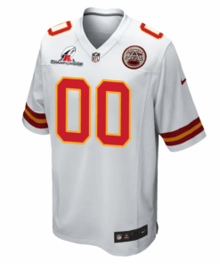 Kansas City Chiefs AFC Championship Patch Game Men Custom Jersey – White JS7780 nicesnker