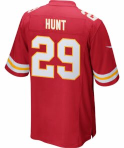 Kareem Hunt 29 Kansas City Chiefs Super Bowl LIX New Orleans Patch Game Men Jersey – Red JS1315 nicesnker