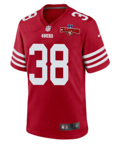 Kemon Hall 38 San Francisco 49ers NFC Champions Patch Game Men Jersey – Scarlet JS5879 nicesnker