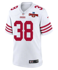 Kemon Hall 38 San Francisco 49ers NFC Champions Patch Game Men Jersey – White JS2263 nicesnker