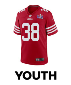 Kemon Hall 38 San Francisco 49ers Super Bowl LVIII Patch Game YOUTH Jersey – Scarlet JS1621 nicesnker