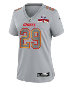 La’Mical Perine 29 Kansas City Chiefs Super Bowl LVIII Champions 4 Stars Patch Atmosphere Fashion Game Women Jersey – Gray JS9820 nicesnker