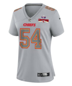 Leo Chenal 54 Kansas City Chiefs Super Bowl LVIII Champions 4 Stars Patch Atmosphere Fashion Game Women Jersey – Gray JS5353 nicesnker