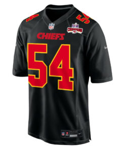 Leo Chenal 54 Kansas City Chiefs Super Bowl LVIII Champions 4 Stars Patch Fashion Game Men Jersey – Carbon Black JS1941 nicesnker