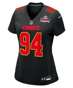 Malik Herring 94 Kansas City Chiefs Super Bowl LVIII Champions 4 Stars Patch Fashion Game Women Jersey – Carbon Black JS4052 nicesnker