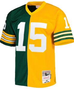 Men’s Green Bay Packers Bart Starr Mitchell & Ness Green/Gold 1969 Split Legacy Jersey JS7407 nicesnker