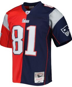 Men’s New England Patriots Randy Moss Mitchell & Ness Navy/Red 2007 Split Legacy Jersey JS6082 nicesnker