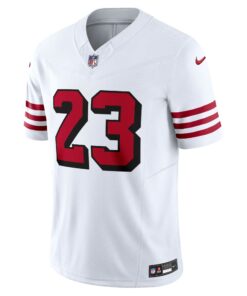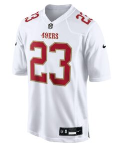 Men’s San Francisco 49ers Christian McCaffrey Tundra White Fashion Game Jersey JS7803 nicesnker