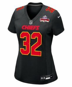 Nick Bolton 32 Kansas City Chiefs Super Bowl LVIII Champions 4 Stars Patch Fashion Game Women Jersey – Carbon Black JS6376 nicesnker