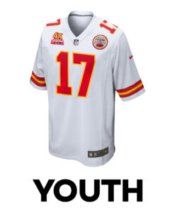 Richie James 17 Kansas City Chiefs Super Bowl LVIII Champions 4 Stars Patch Game YOUTH Jersey – White JS5277 nicesnker