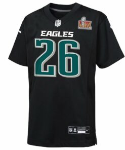 Saquon Barkley 26 Philadelphia Eagles Youth Super Bowl LIX Patch Fashion Game Player Jersey – Carbon Black JS5277 nicesnker