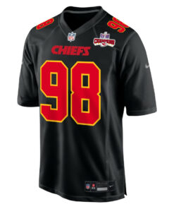 Tershawn Wharton 98 Kansas City Chiefs Super Bowl LVIII Champions 4X Fashion Game Men Jersey – Carbon Black JS5052 nicesnker