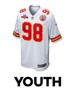 Tershawn Wharton 98 Kansas City Chiefs Super Bowl LVIII Champions 4 Stars Patch Game YOUTH Jersey – White JS5676 nicesnker
