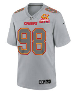 Tershawn Wharton 98 Kansas City Chiefs Super Bowl LVIII Champions 4X Atmosphere Fashion Game Men Jersey – Gray JS3578 nicesnker