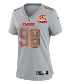 Tershawn Wharton 98 Kansas City Chiefs Super Bowl LVIII Champions 4X Atmosphere Fashion Game Women Jersey – Gray JS7497 nicesnker