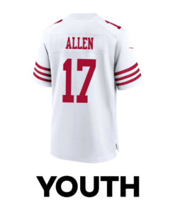 Brandon Allen 17 San Francisco 49ers Super Bowl LVIII Patch Game YOUTH Jersey – White JS1568 nicesnker