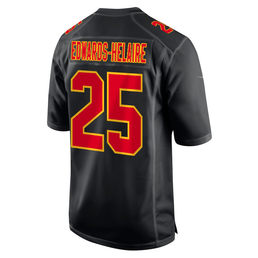 Clyde Edwards-Helaire 25 Kansas City Chiefs Super Bowl LVIII Champions 4 Stars Patch Fashion Game Men Jersey – Carbon Black JS2295 nicesnker
