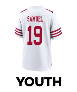 Deebo Samuel 19 San Francisco 49ers Super Bowl LVIII Patch Game YOUTH Jersey – White JS5464 nicesnker