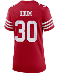 Custom George Odum 30 San Francisco 49ers Super Bowl LVIII Patch Game Women Jersey – Scarlet JS9384 – Unique Gift from Rosemadashop
