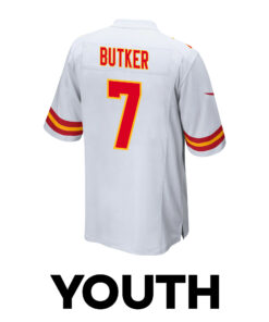 Custom Harrison Butker 7 Kansas City Chiefs Super Bowl LVIII Patch Game YOUTH Jersey – White JS2829 – Unique Gift from Rosemadashop