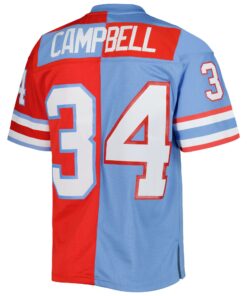 Custom Men’s Houston Oilers Earl Campbell Mitchell & Ness Red/Light Blue Gridiron Classics 1980 Split Legacy Jersey JS3158 – Unique Gift from Rosemadashop