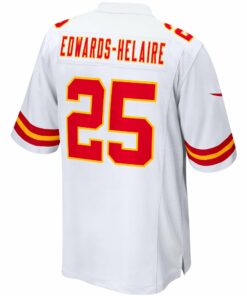Custom Men’s Kansas City Chiefs Clyde Edwards-Helaire White Game Jersey JS1737 – Unique Gift from Rosemadashop