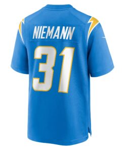 Custom Men’s Los Angeles Chargers Nick Niemann Powder Blue Game Player Jersey JS4102 – Unique Gift from Rosemadashop