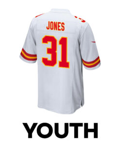 Every Custom Nic Jones 31 Kansas City Chiefs Super Bowl LVIII Champions 4X Game YOUTH Jersey – White JS4250 from Rosemadashop is more than just clothing – it’s a way to celebrate passions, commemorate special moments, and give a gift that leaves a lasting impression. Whether you’re looking to stand out at a game, create a unique keepsake, or surprise a loved one with a personalized present, our jerseys are designed to make every occasion extra special.
