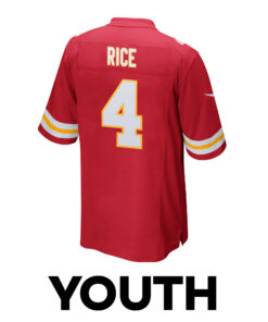 Rashee Rice 4 Kansas City Chiefs Super Bowl LVIII Patch Game YOUTH Jersey – Red JS4815 nicesnker
