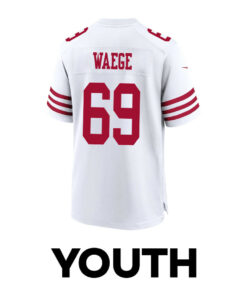 Spencer Waege 69 San Francisco 49ers Super Bowl LVIII Patch Game YOUTH Jersey – White JS9808 nicesnker