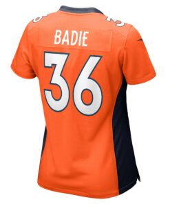 Women’s Denver Broncos Tyler Badie Orange Team Game Jersey JS1682 nicesnker