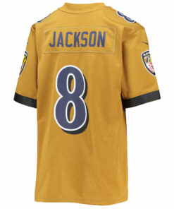 Custom Youth Baltimore Ravens Lamar Jackson Gold Inverted Team Game Jersey JS7720 – Unique Gift from Rosemadashop