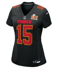Women’s Kansas City Chiefs Patrick Mahomes Carbon Black Super Bowl LIX Fashion Game Jersey JS2826 nicesnker