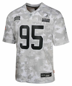 Youth Cleveland Browns Myles Garrett Arctic Camo 2024 Salute to Service Game Jersey JS2417 nicesnker