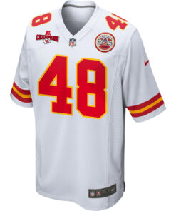 Cole Christiansen 48 Kansas City Chiefs AFC Champions Patch Game Men Jersey – White JS6689 nicesnker