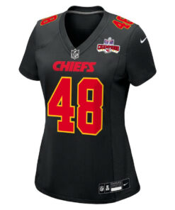 Cole Christiansen 48 Kansas City Chiefs Super Bowl LVIII Champions 4 Stars Patch Fashion Game Women Jersey – Carbon Black JS3700 nicesnker