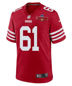 Corey Luciano 61 San Francisco 49ers NFC Champions Patch Game Men Jersey – Scarlet JS5980 nicesnker
