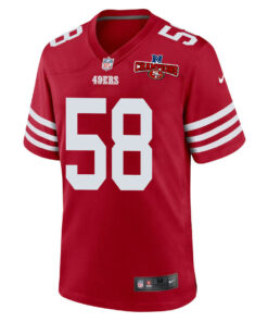 Alex Barrett 58 San Francisco 49ers NFC Champions Patch Game Men Jersey – Scarlet JS8137 nicesnker
