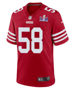 Alex Barrett 58 San Francisco 49ers Super Bowl LVIII Patch Game Men Jersey – Scarlet JS6688 nicesnker