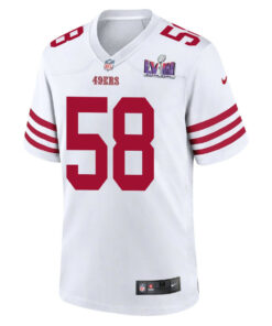 Alex Barrett 58 San Francisco 49ers Super Bowl LVIII Patch Game Men Jersey – White JS4747 nicesnker