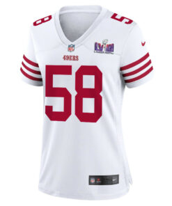 Alex Barrett 58 San Francisco 49ers Super Bowl LVIII Patch Game Women Jersey – White JS7384 nicesnker
