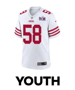 Alex Barrett 58 San Francisco 49ers Super Bowl LVIII Patch Game YOUTH Jersey – White JS8391 nicesnker