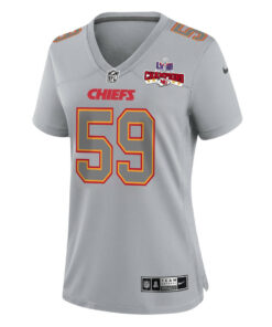 Darius Harris 59 Kansas City Chiefs Super Bowl LVIII Champions 4 Stars Patch Atmosphere Fashion Game Women Jersey – Gray JS3283 nicesnker