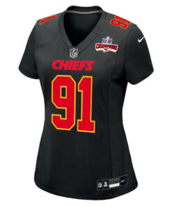 Derrick Nnadi 91 Kansas City Chiefs Super Bowl LVIII Champions 4 Stars Patch Fashion Game Women Jersey – Carbon Black JS9359 nicesnker