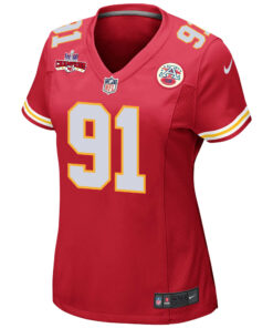 Derrick Nnadi 91 Kansas City Chiefs Super Bowl LVIII Champions 4 Stars Patch Game Women Jersey – Red JS4217 nicesnker