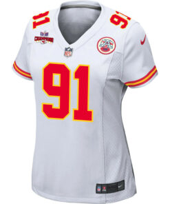 Derrick Nnadi 91 Kansas City Chiefs Super Bowl LVIII Champions 4 Stars Patch Game Women Jersey – White JS6525 nicesnker