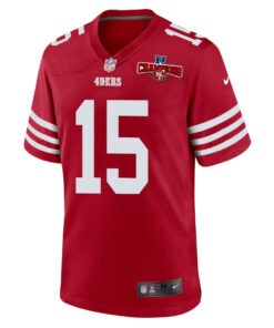 Jauan Jennings 15 San Francisco 49ers NFC Champions Patch Game Men Jersey – Scarlet JS5044 nicesnker