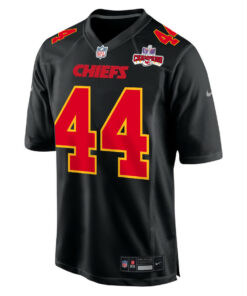 Cam Jones 44 Kansas City Chiefs Super Bowl LVIII Champions 4 Stars Patch Fashion Game Men Jersey – Carbon Black JS4493 nicesnker