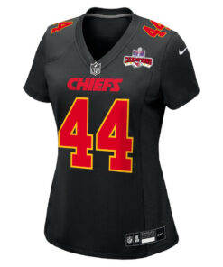 Cam Jones 44 Kansas City Chiefs Super Bowl LVIII Champions 4 Stars Patch Fashion Game Women Jersey – Carbon Black JS8096 nicesnker